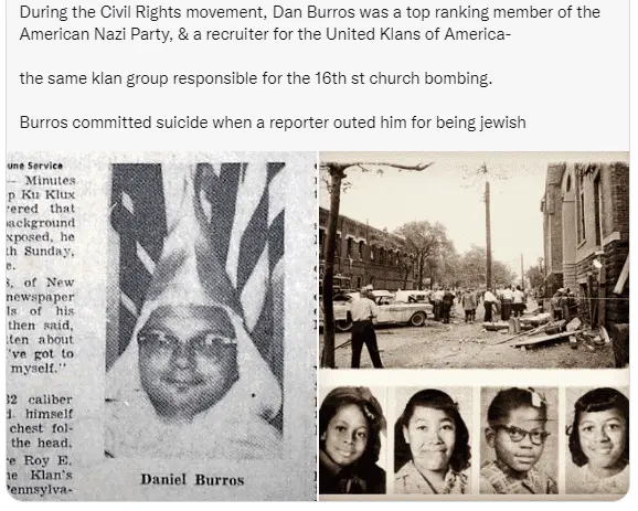 It was Dan Burros (A Jew) that blew up and killed four young black girls 16th bombing in 1963