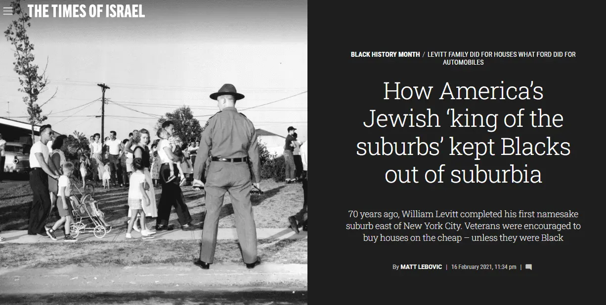 It was William Levitt (A Jew) who built tons whites only burbs.
