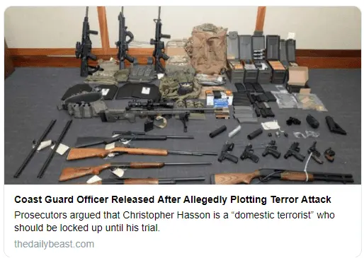 That stockpile is pretty normal where I come from.A cowardly white supremacist (Christopher Hasson) was arrested for having a stockpile of weapons and a plot to kill innocent Black people.
