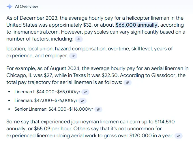 You need to check how much a California Journeyman lineman makes. The base is 108,000 depending on which company you work for. However, the work he does is significantly more dangerous so his base pay is about 150,000. Add in the fact he works 6 days a week, and almost all of those days are 10 to 12 hours, and the overtime adds up in a hurry.Check my math... $15,000 a week would be significantly more than $66,000 a year, right?