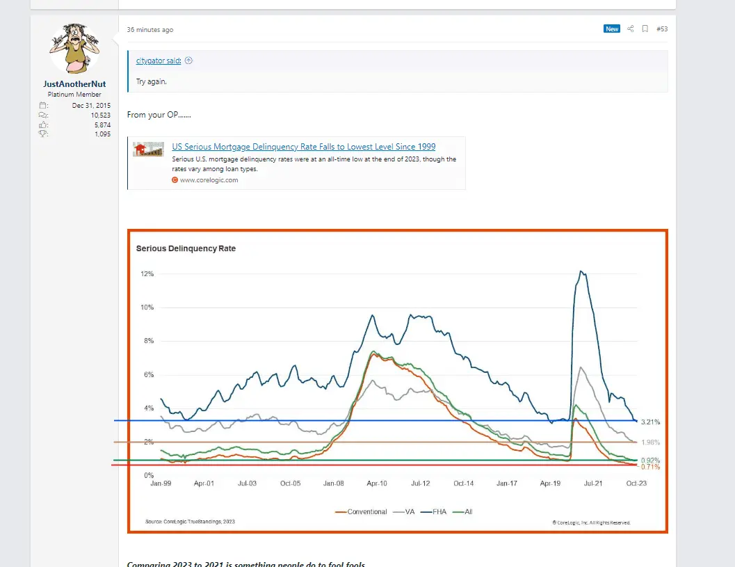 This is a good thingLooks like Bidenomics has this economy humming so well that mortgage delinquency rates are almost nothing. At some point you righties are gonna have to give up on “the economy sucks” when the evidence to the opposite is so clear. Congratulations to the Chief Economy Owner or CEO of the country.