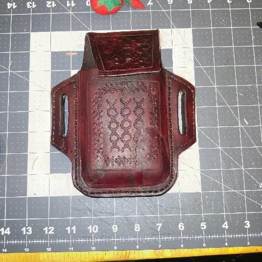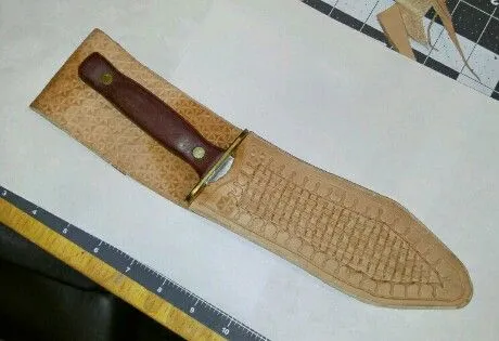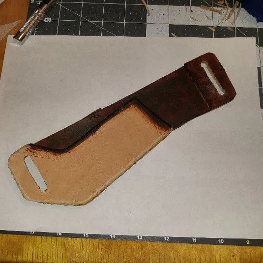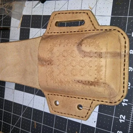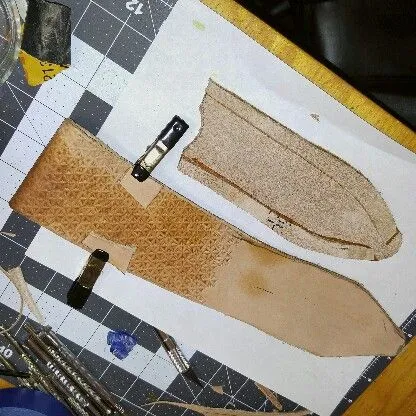 This didn't work out, working on a new knife that will fit the sheath before I finish it.Working on a horizontal sheath...