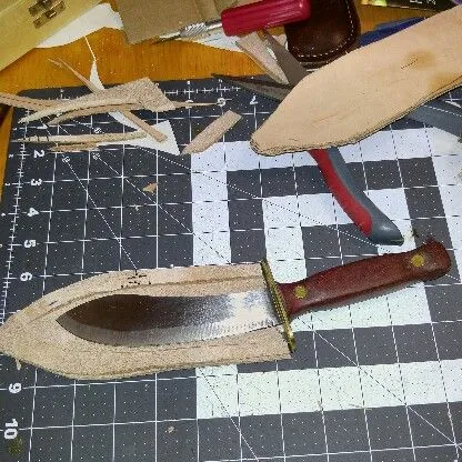 Try sewing garments........This didn't work out, working on a new knife that will fit the sheath before I finish it.Working on a horizontal sheath...