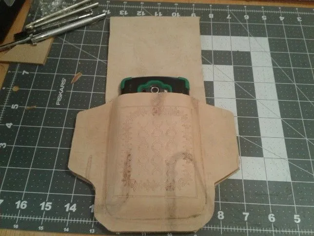 In fact, when my commercial cell phone holster gave up the ghost last week, I decided to try this pancake style as a dress rehearsal for a holster I want to make...to work out the quirks.