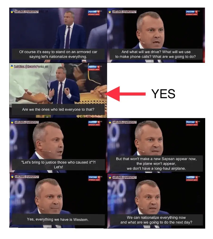 Moscow TV realized, they depend completely on Western technologies. "If we nationalize everything, we'll have nothing to drive, nothing to make calls with..."
