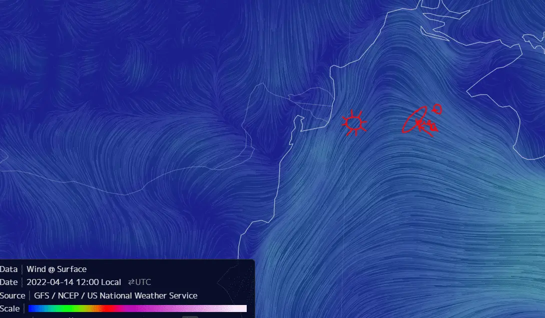 Here is the wind from April 12 to April 15