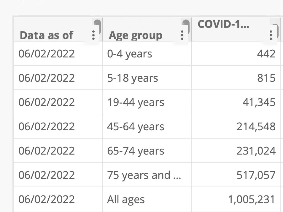 Look at this chart. from this site: Provisional COVID-19 Deaths: Focus on Ages 0-18 Years | Data | Centers for Disease Control and Prevention