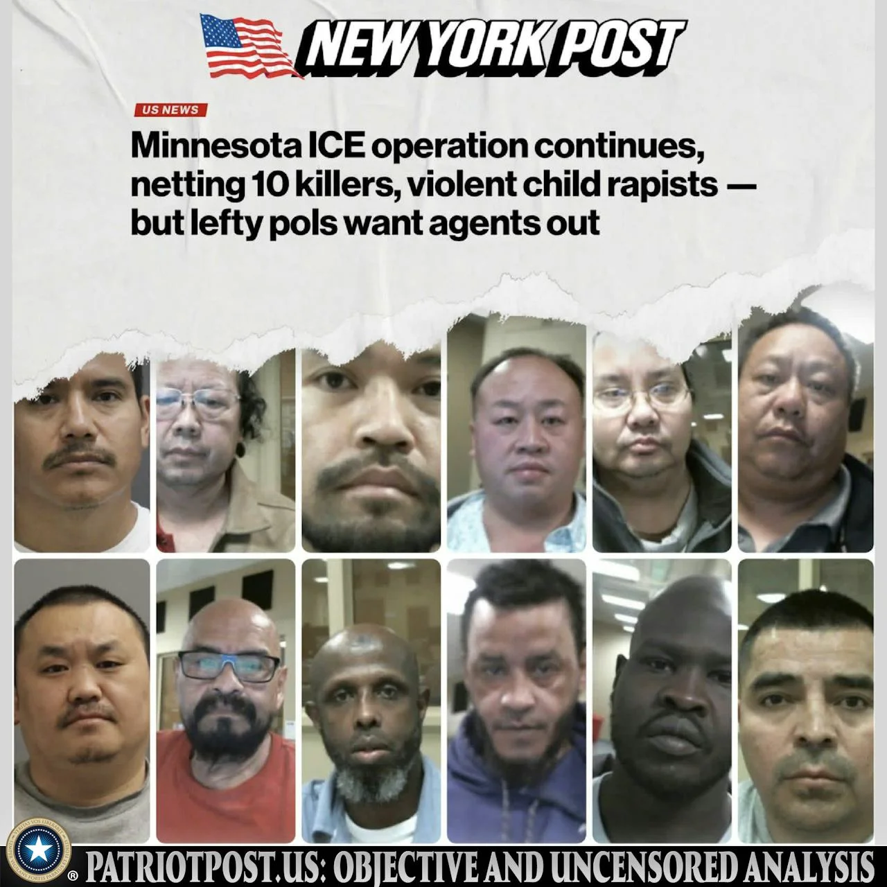 They are targeting foreign born people. Doesn't matter if they are the bad guys depicted in this thread or not. They aren't following standard arrest procedures as well.Yet you just posted ICE is targeting people who would never commit a crime. Elected Dems are telling ICE to get out of MN