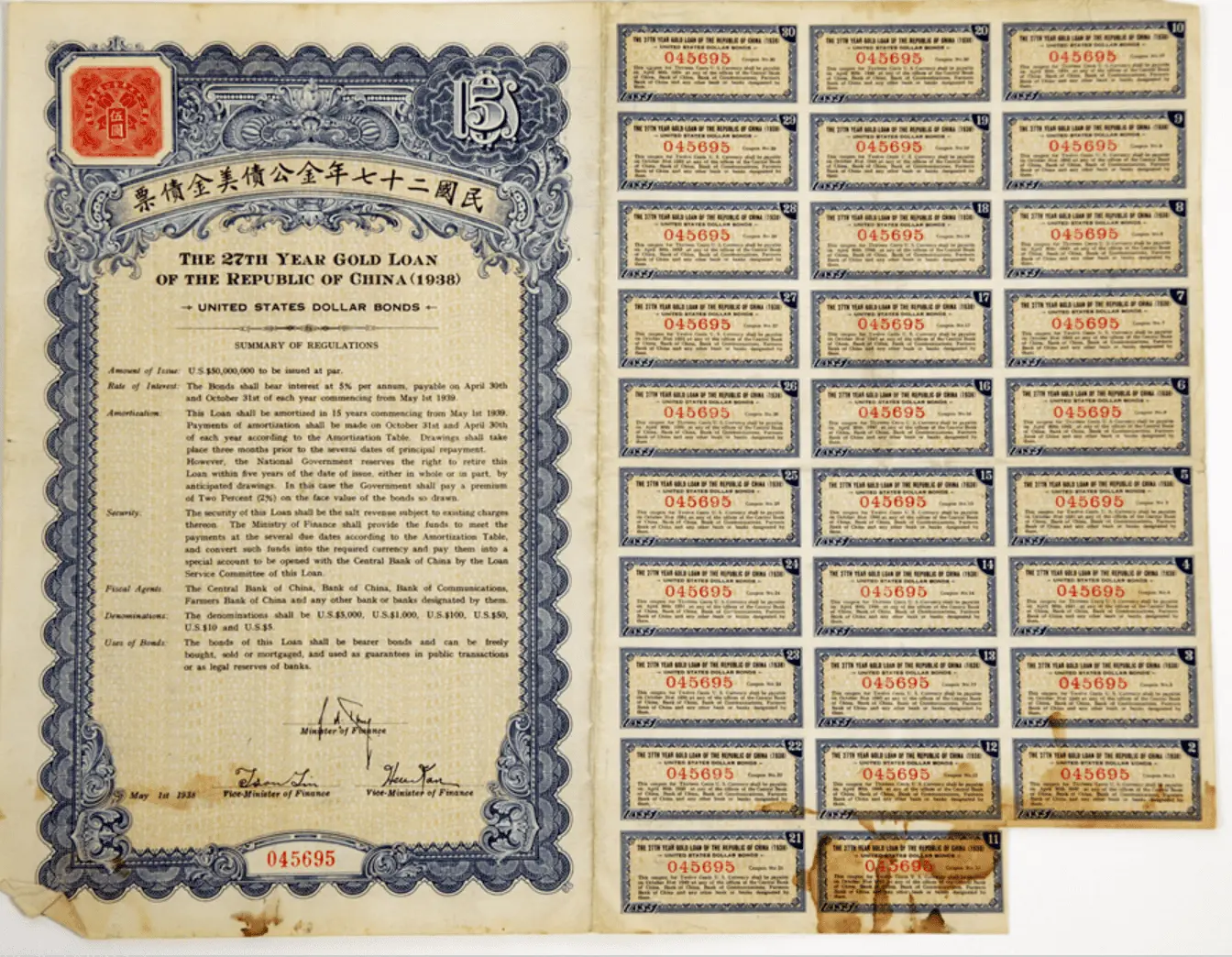 From 1900 to 1940, the Chinese Government issued millions of dollars in sovereign debt, most notably, a large tranche of ÂŁ25,000,000 issued at 5% in 1913 set to mature in 1960. This massive bond funded the modernization of China's infrastructure and was widely acquired at the time by governments, banks, and investors across the globe. However, in 1938 China defaulted on its "binding engagement upon the Government of the Republic of China and its Successors," leaving millions of global creditors unpaid. In accordance with the terms of the bond, successor government doctrine, and accounting standards, the United States can and should hold China accountable to its obligations.