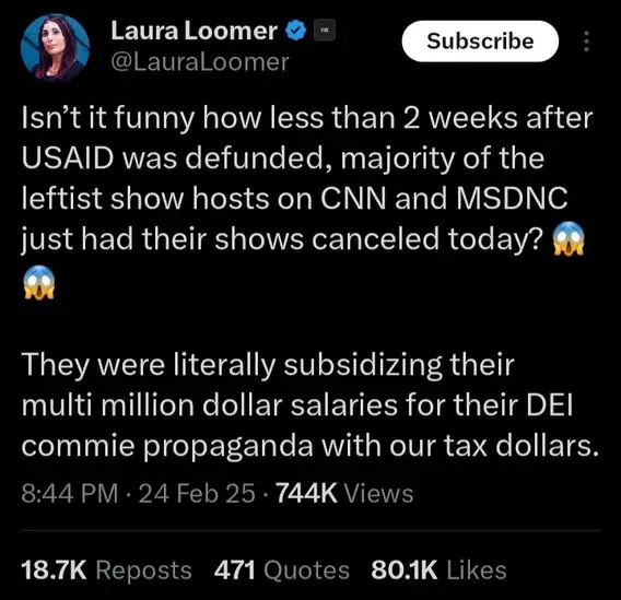 Such an impressive resume for someone so utterly repulsive and hateful. Joyless Reid now joins Keith Olbermann, Don Lemon and a host of other venom spewing Democrat mouthpieces on the junk heap. WINNING!Lara Loomer is definitely DEI.