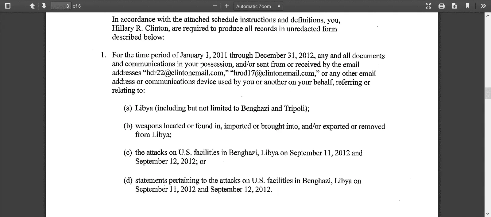 Hillary Email Subpoena Released