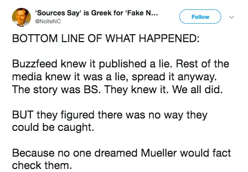 Now, let's look at the BuzzFeed article, keeping in mind that Carr isn't disputing the "specific statements" occurred, and neither that Mueller has obtained "documents and testimony" on the matter: