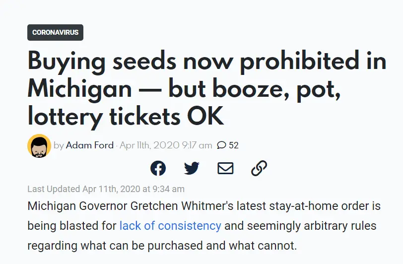 She did more than that. After she banned seeds she discovered that people were buying flats of seedlings so she banned those then all gardening supplies to cover vegetables that had already been planted.