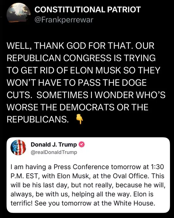Musk turned out to be as much of a threat to Trump and the RINO's as he was the radical left. Especially with the BS that's going into this next bill. He would've exposed that and make the RINO's look like the same corrupt swamp creatures as Trump said he was going to go after.