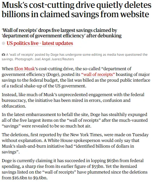 I have no means to conduct such an audit. DOGE does. And they are being 100% transparent in what they are finding in waste, fraud, inefficiency, ineffectiveness, incompetence, etc. What honorable person wants that in their government?I have no idea how "efficient' any of these agencies are, have you seen an audit report? can you please share it here?