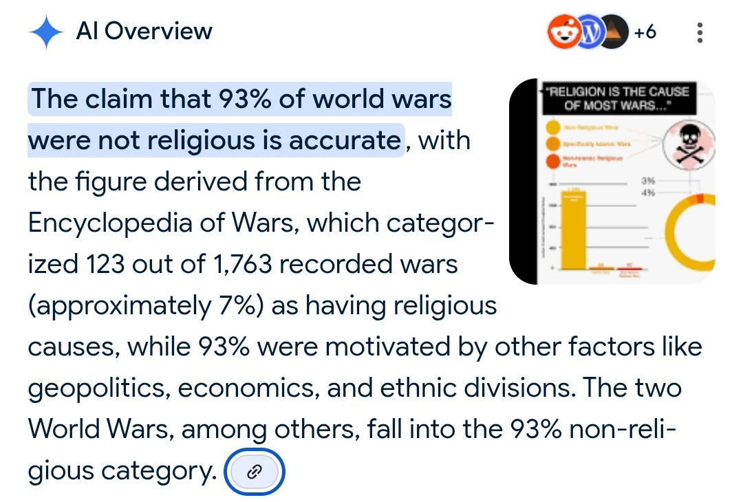 Did you know, 93% of human wars were not religious based! No you didn't.
