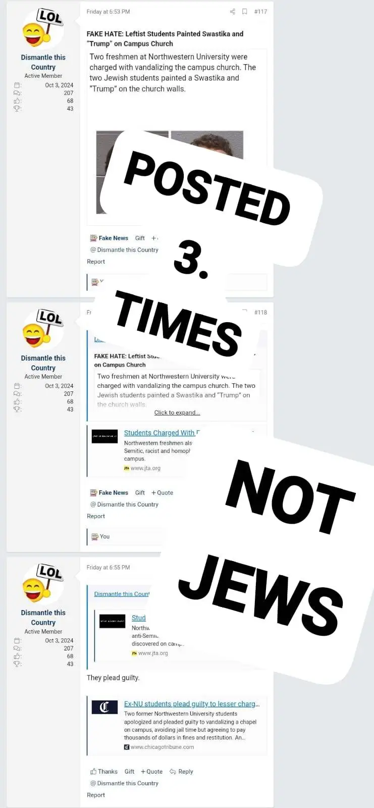 "Who don't use the internet." LMAO! Keep trying to spin.This from 2012 is totally unrelated. It's by fanatical Haredim grandchildren of survivors who don't use the internet and don't know the harshness of this symbol paint as a 'hate crime' message. It's like a black man calling another one the N word.