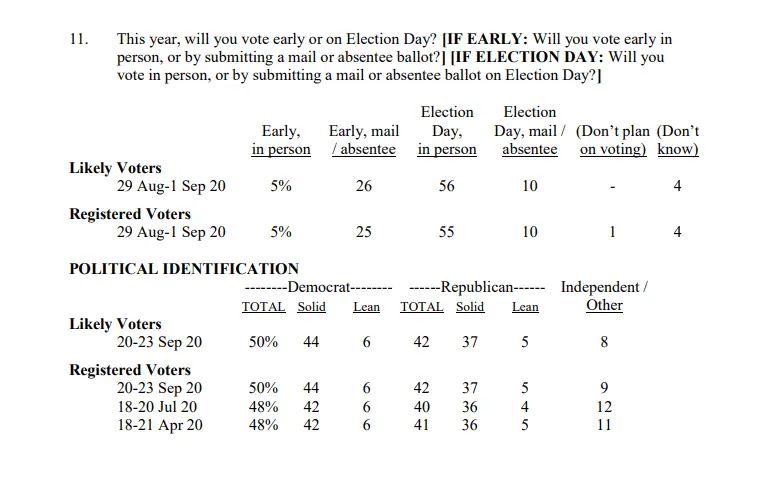 ^^^^ Look at the sample they used in their poll that I am highlighting, it's the poll from 20-23 Sep and you have they polled 50% Democrats and only 42% Republicans, yes that's a big difference of polling an EXTRA 8% Democrats and with that extra 8% of Democrats they get the below result: