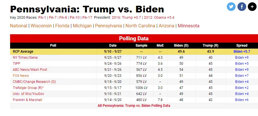 RealClearPolitics - Election 2020 - Pennsylvania: Trump vs. Biden