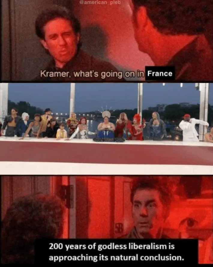 And I can count. If they were going to mock the Last Supper, wouldn't they have had 13 people? Jesus + 12 apostles? I counted 18 people at the table.