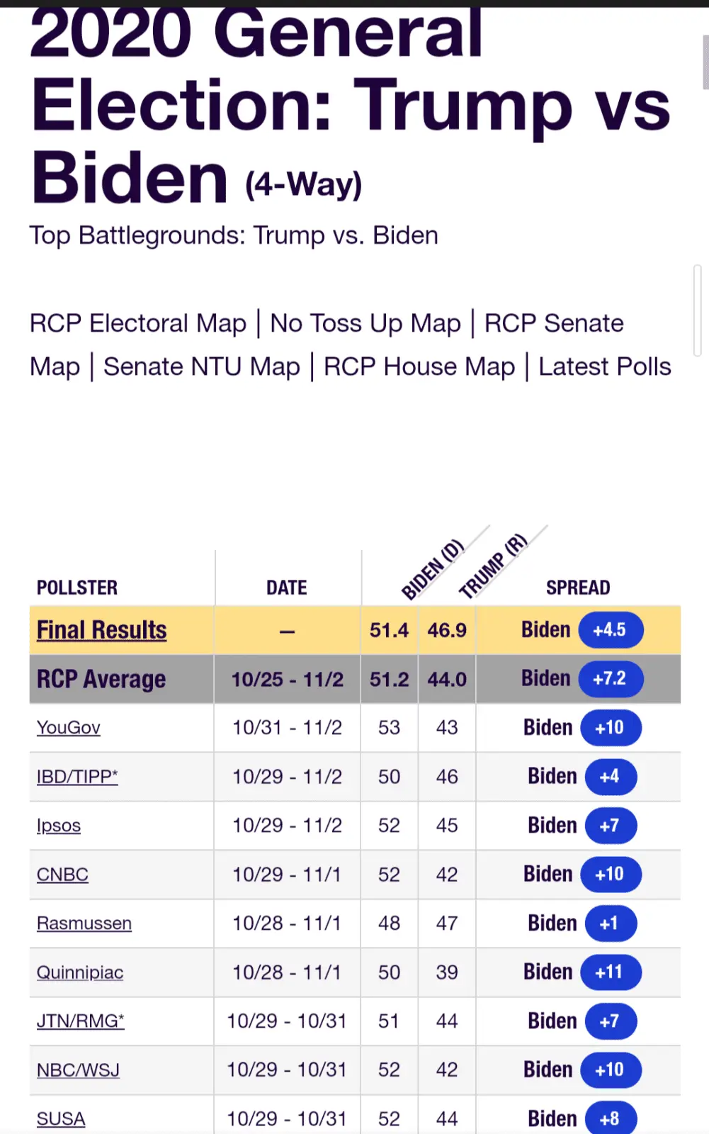 Since this is an opinion, it doesn't require links...but here are the links to the 2020 and 2016 polling.