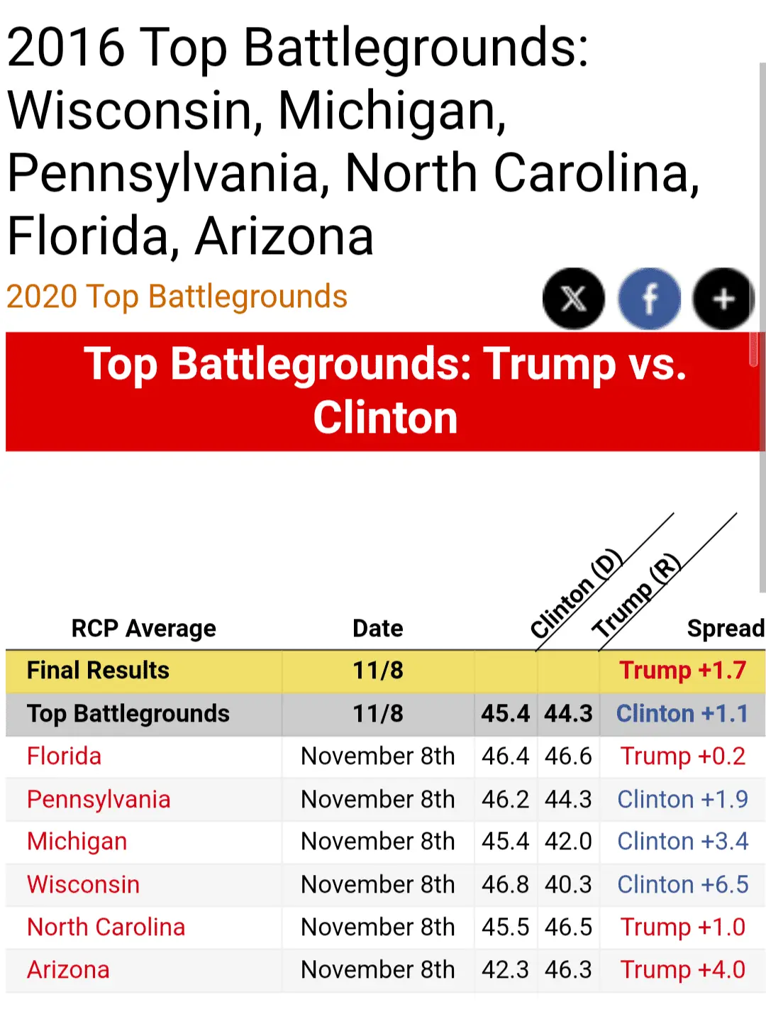 Battleground 2016 polling... Trump won Wisconsin, Michigan and Pennsylvania...