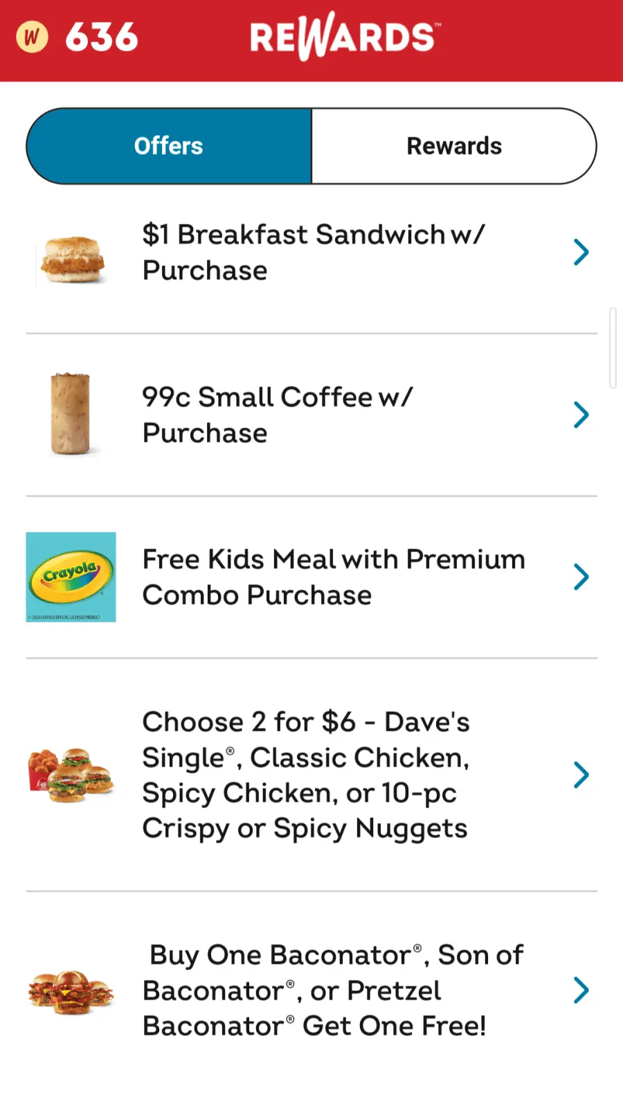 The APP has all kind of great deals, breakfast and Lunch, at MANY Fast Food Places.
