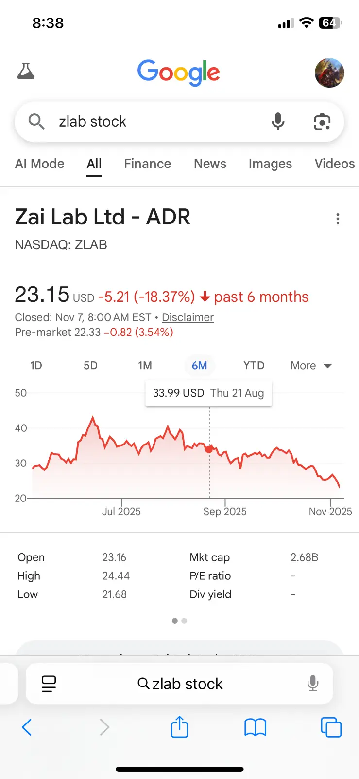 Un Luckyone , if we took his advice we would be still losing money, down to $24.80, so almost a $10 a share loss since unlucky one’s tip.ZLAB - A stock that you all should consider buying