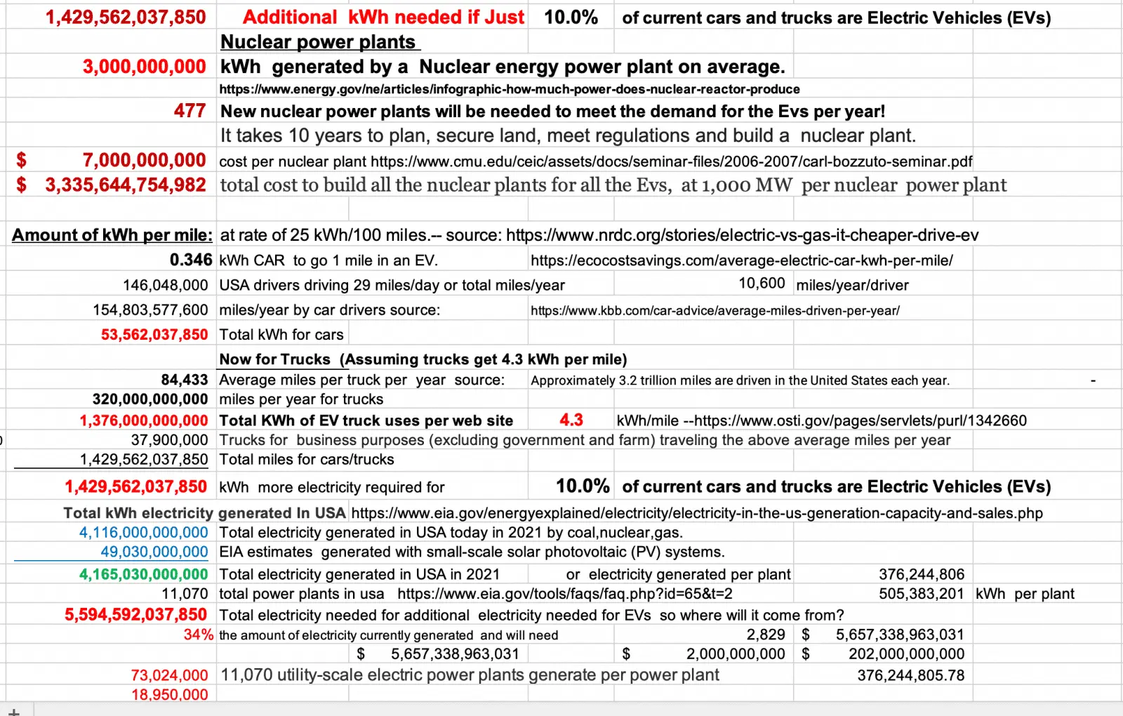 As a result just 10% more EV cars/trucks will need 1.429 Trillion kWh and to create the necessary 477 new nuclear power plants