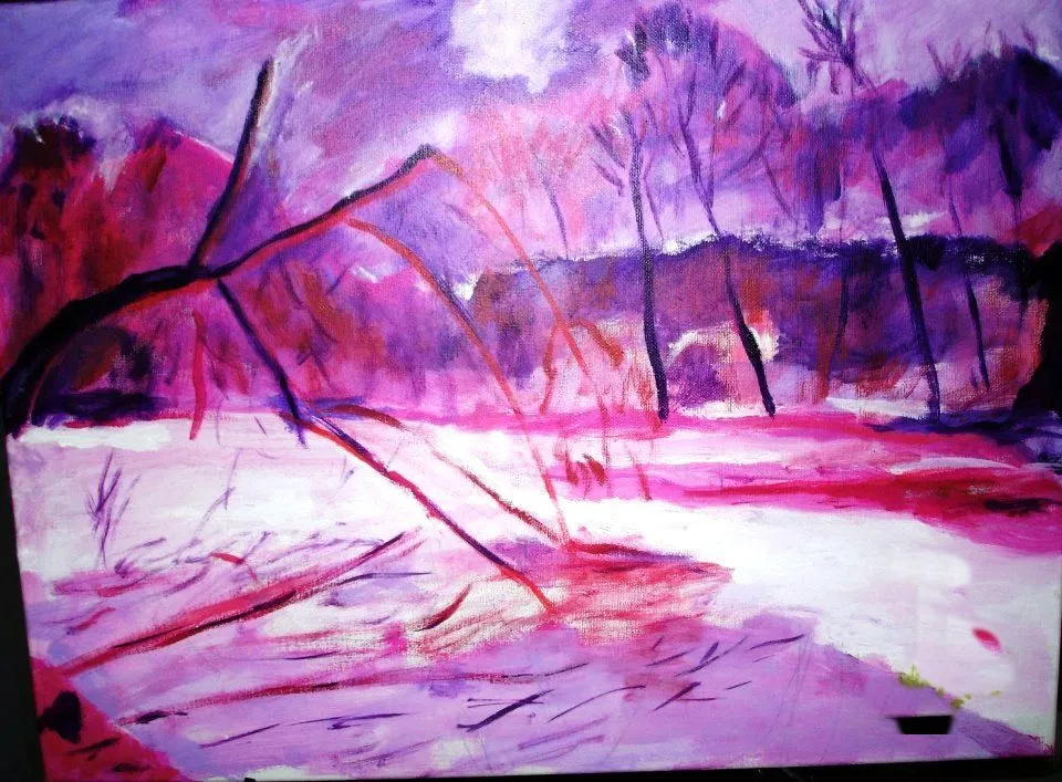 Couldn't believe snow in the woods after Sandy...a quick execution with acrylics...almost watercolor like.