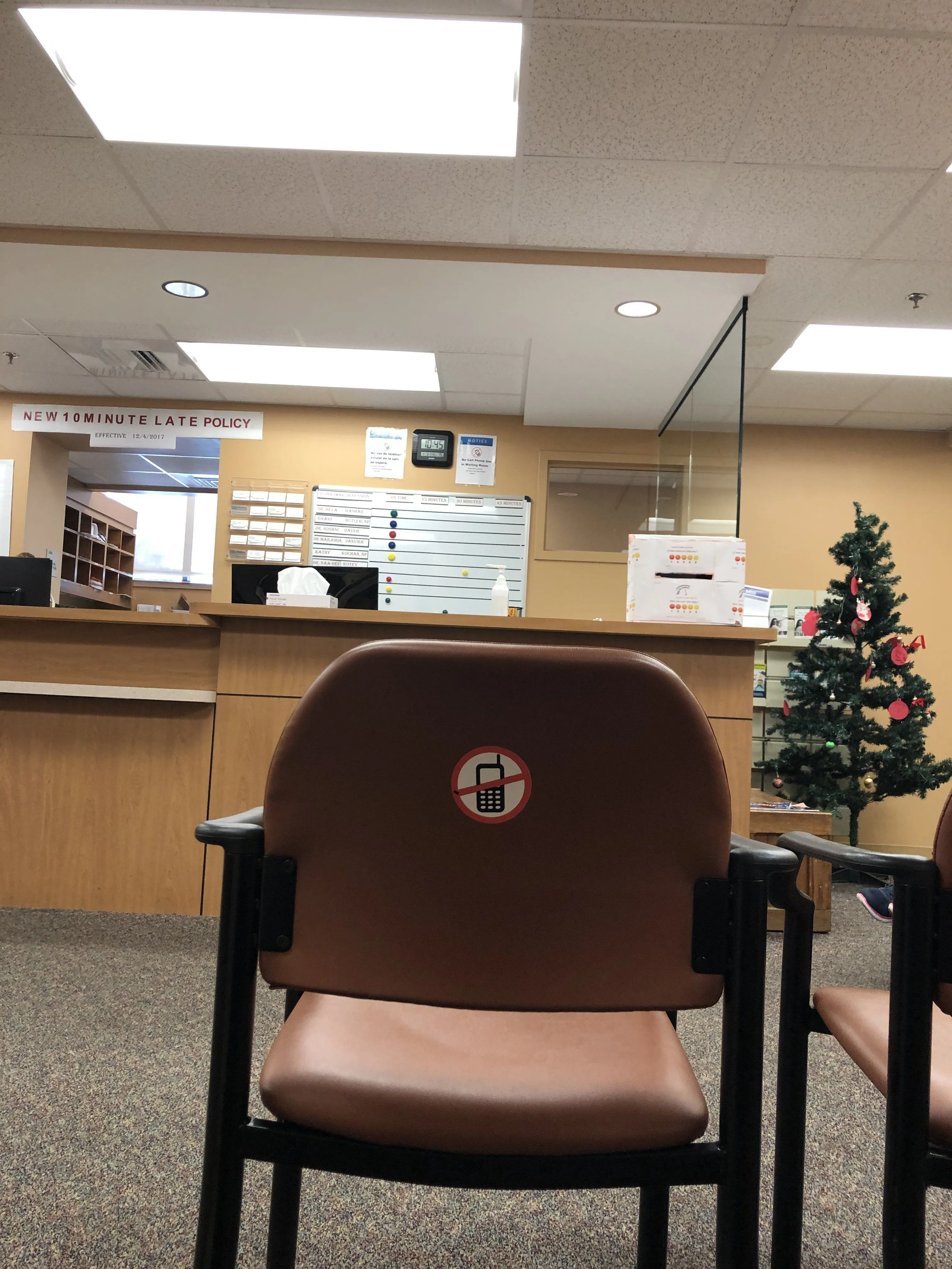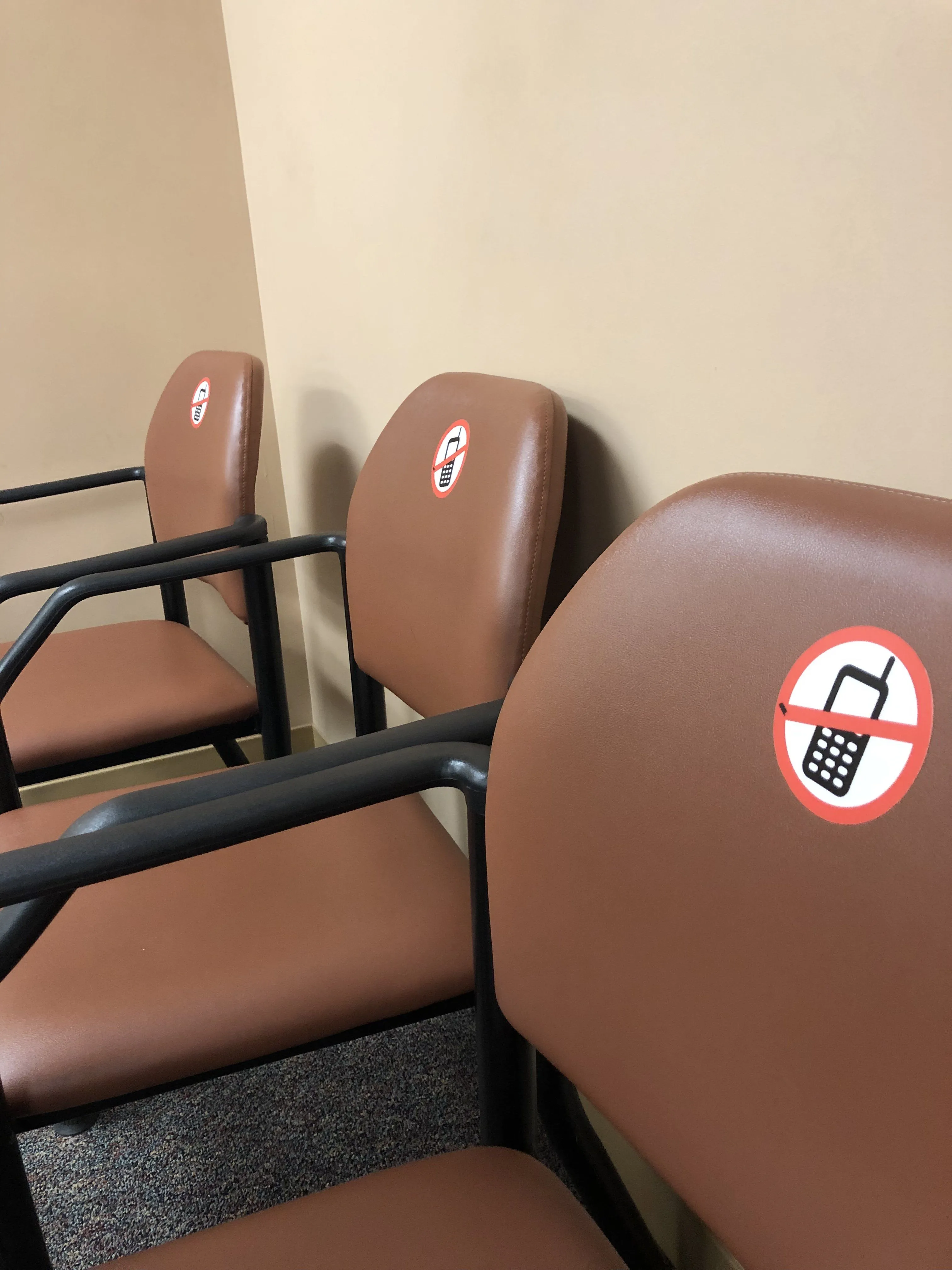 This is a waiting room to see a doctor they forbib cell phones...