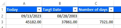 So, there are 7,322 days between August 28, 2003, and September 13, 2023.