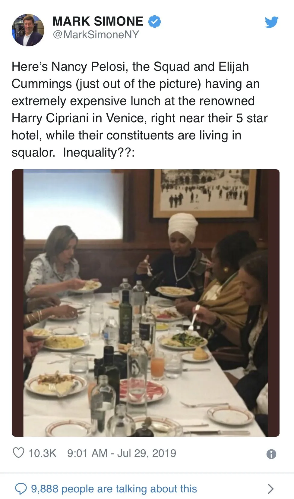 How many fly to Italy to dine on rooftop 5 star restaurants?pretty sure all of the people in office eat while there are issues within their district.She dines well while children in her district starve.