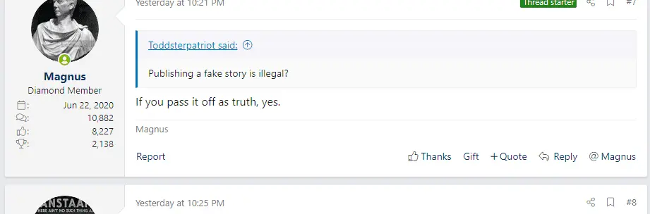 Really?The claim was "Publishing a fake story is illegal", not defamation.