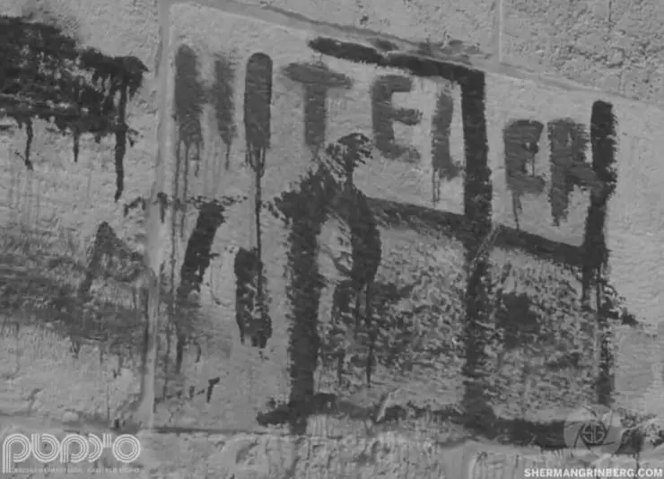 "Swastika on the walls of Jerusalem's Zion Gate. Arab feelings in 1936"