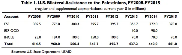 There is a correlation to the amount Congress authorized for the Palestinians and the increase in the number of rockets fired from Gaza into Israel; particularly in the troubled years of 2007, 2012, and 2014.