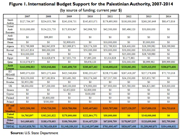 There is no question that the Hostile Arab Palestinian poses a clear and present danger to both the security and integrity of Israel, as well as regional security. But it is just as important to note that the US has made its fair share in contributions to the Palestinians, as compared to the other major donor nations.