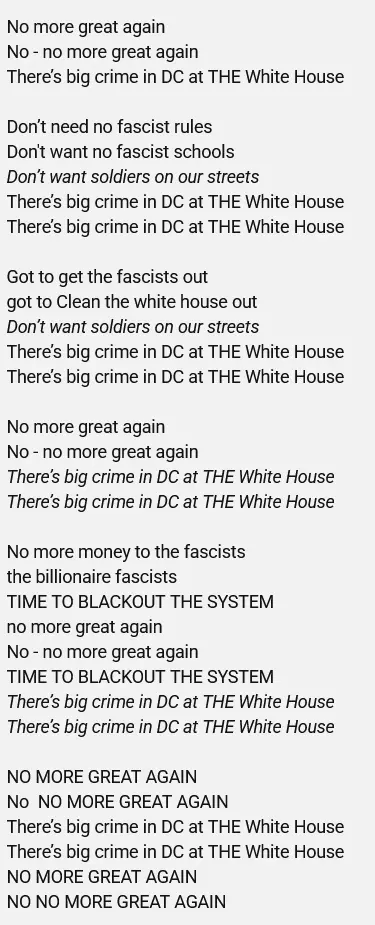 Young should have really have done the number in the Rap genre, in solidarity with all of the Cripz, Bloodz, MS 13'ers and other criminals who are being imposed on by the Trumpster in Washington. All of their business is drying up, drive-bys aren't getting done cars aren't getting jacked, children aren't getting molested, all because The Donald put the kibosh on gang and crime activity in the district