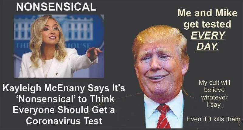 If Republicans didn’t believe the testing did any good, then why are Donald Trump and Mike Pence getting tested together, 14 times a week. I can’t even get one.