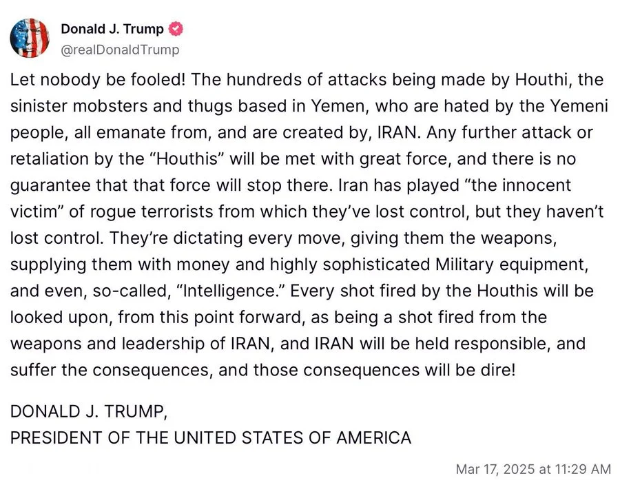 Netanyahu posted on X (formerly Twitter) that “attacks by the Houthis emanate from Iran” and warned that Israel will respond at a time and place of its choosing — directly targeting “their Iranian terror masters.”