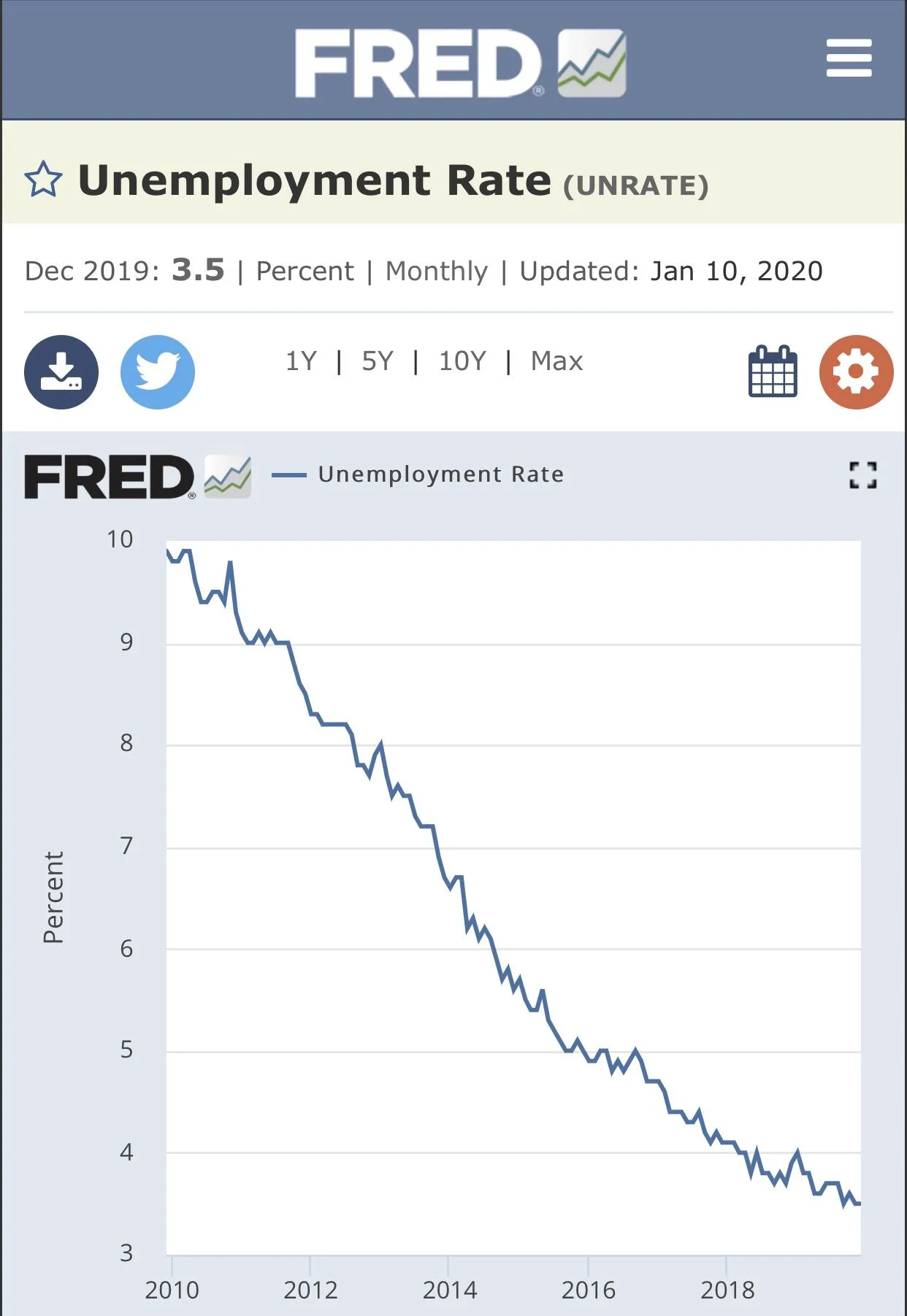 Unemployment for the last 10 years.