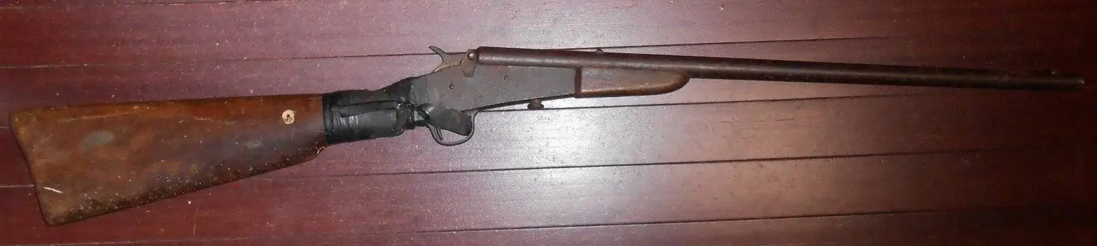 He handed me a very distressed .22 Remington No. 6 Rolling Block some guy just gave him to get rid of.