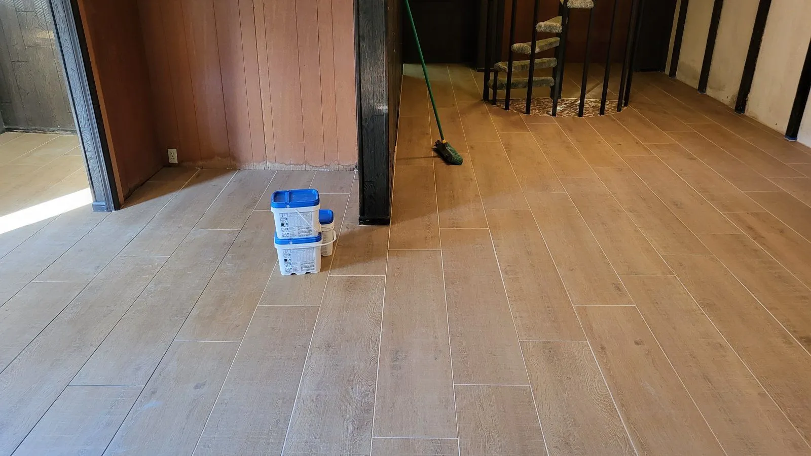 Not gonna lie, 5' long goods on an uneven basement floor was quite the challenge to keep level.