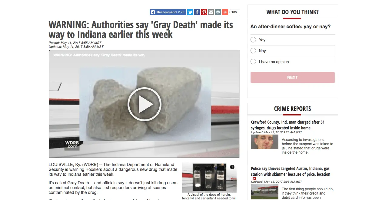 The Indiana Department of Homeland Security is warning about the new drug called “Gray Death” that doesn’t just kill the drug users with even the slightest contact – but the first responders who come to help as well.