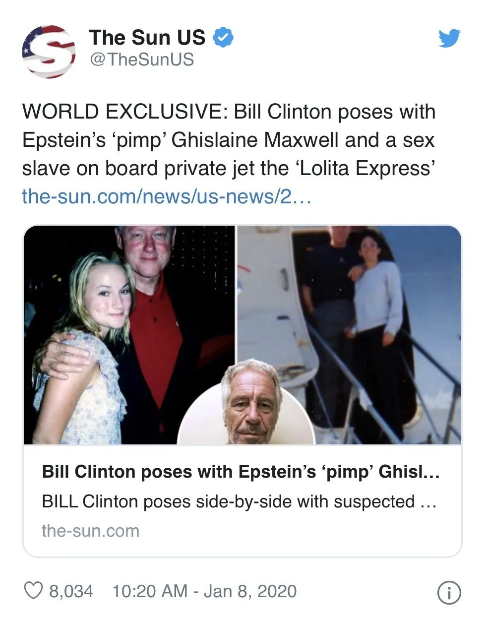 Clinton poses with Epstein's 'pimp' & sex slave on 'Lolita Express'