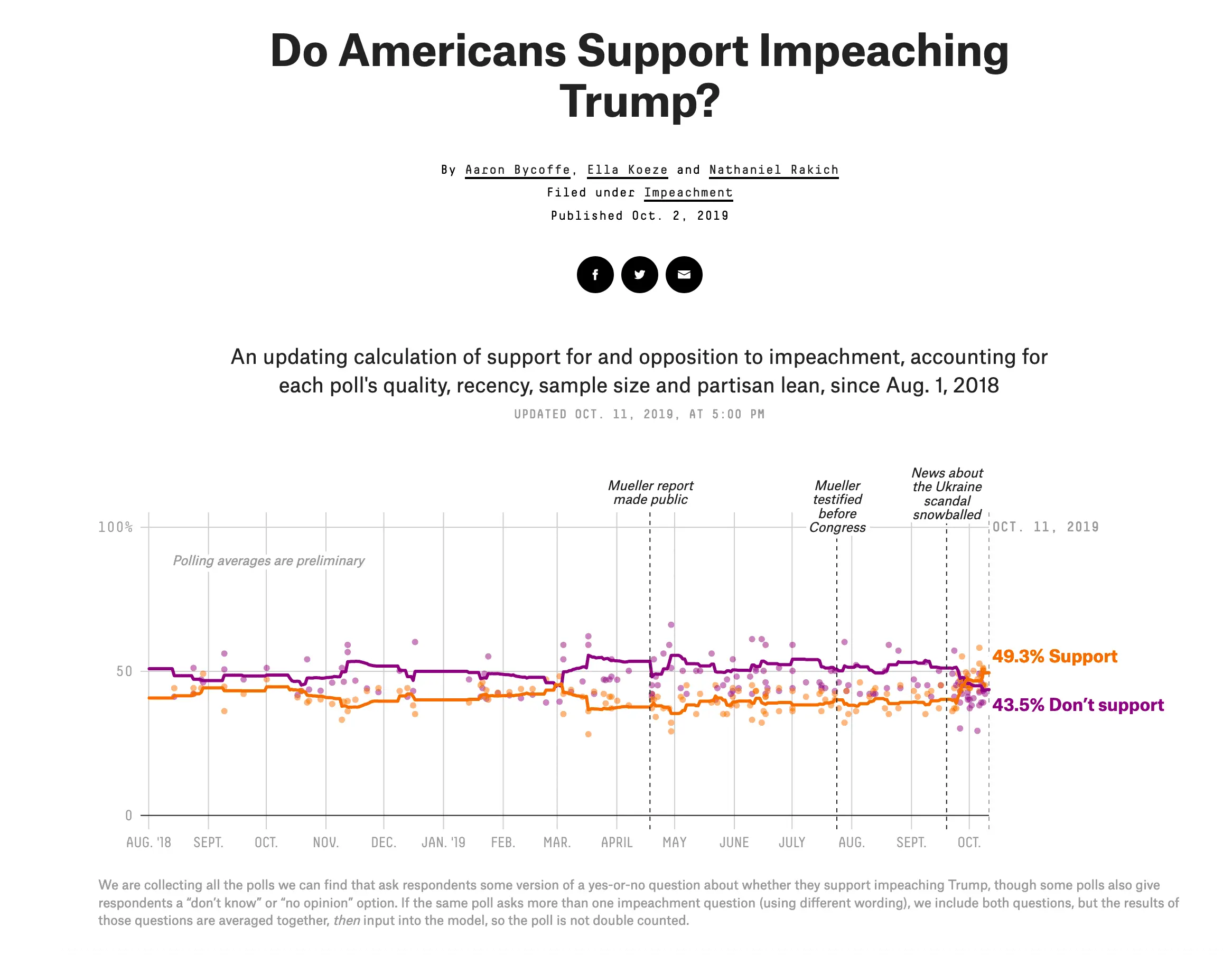 These polls were conducted in early October show support for removal of Trump from office gradually growing. The poll done for CNN in late September showed 47% support for removal of Trump from office. I suspect these numbers will rise to 53% within the next two weeks.