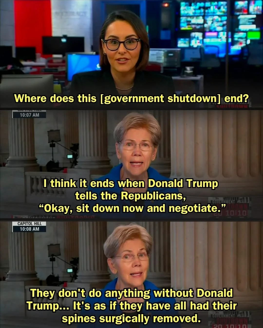 Both 47 and Republicans in the House and the Senate are trying Democrats for the shut-down. That is a lie. Republicans are responsible this crap. They know they need Democrats to pass the budget, Dems need to hang tough. Americans need their health care.