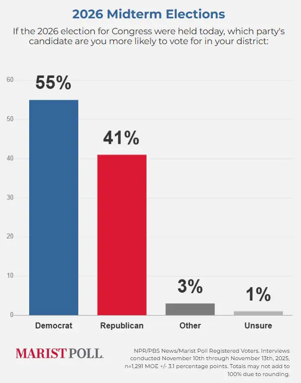 Today Trump is 42% democrats 32% Real Clear PoliticksHe had a lower approval rating when he lost the last midterms and got his ass kicked by Biden and those numbers were HIGHER than we are seeing now.