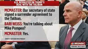 “Our secretary of state signed a surrender agreement with the Taliban,” Mr. Trump’s second national security adviser, H.R. McMaster, said of Mr. Pompeo during a podcast interview with the journalist Bari Weiss on Wednesday. “This collapse goes back to the capitulation agreement of 2020. The Taliban didn’t defeat us. We defeated ourselves.”