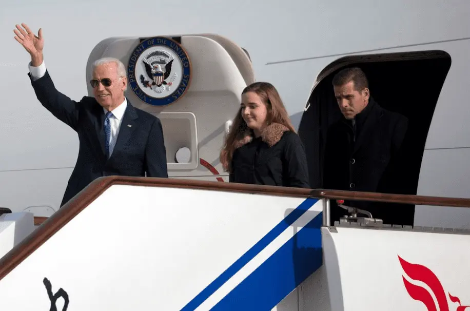 Vice President Joe Biden arrives on Air Force Two in Beijing with his son Hunter Biden, right, and his granddaughter Finnegan Biden in December 2013. (Ng Han Guan/AP)